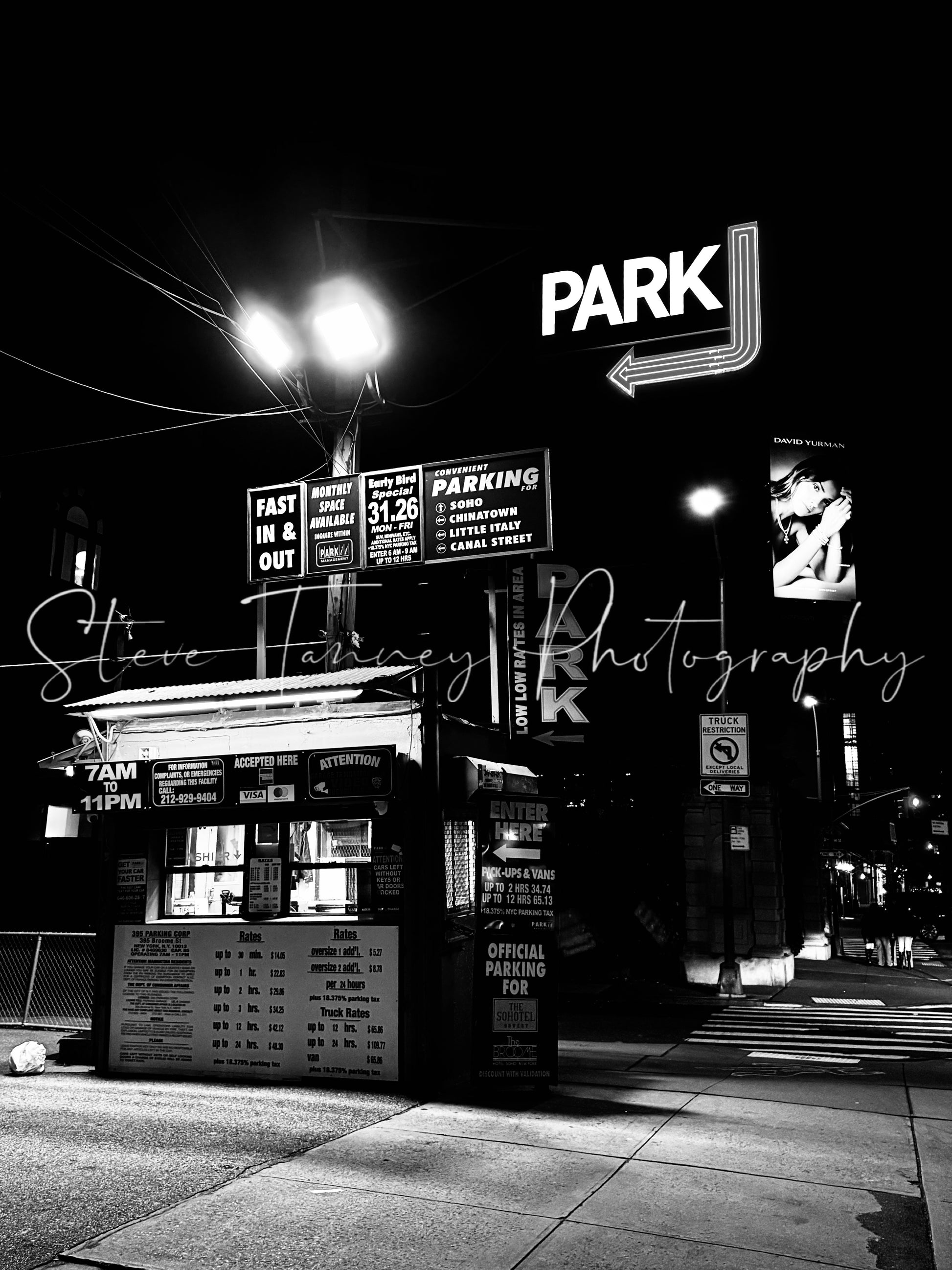 Capture the quiet tension of downtown Manhattan in this atmospheric night scene photographed on Broome Street. Lit by the glow of a lone parking booth, the image blends urban grit with a sense of mystery—an empty corner where something feels just about to happen. The muted tones, stark shadows, and solitary light create a cinematic moment suspended in time, inviting the viewer to imagine the unseen story unfolding just outside the frame. Available borderless or matted. Ready for framing. Please allow 3-5 days for shipment as prints are made to order. Custom sizes available upon request.